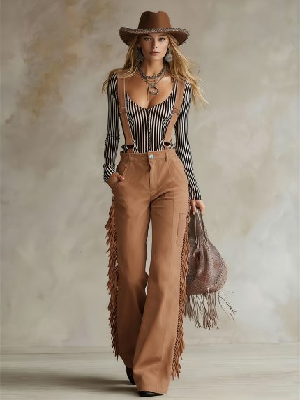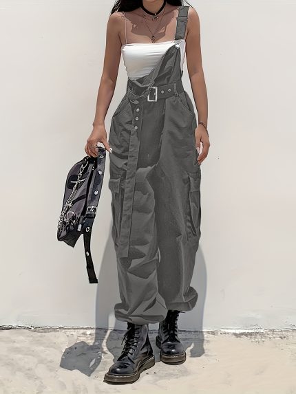 Women’s Fashion Party Cargo Pants with Belt Pockets and Suspenders
