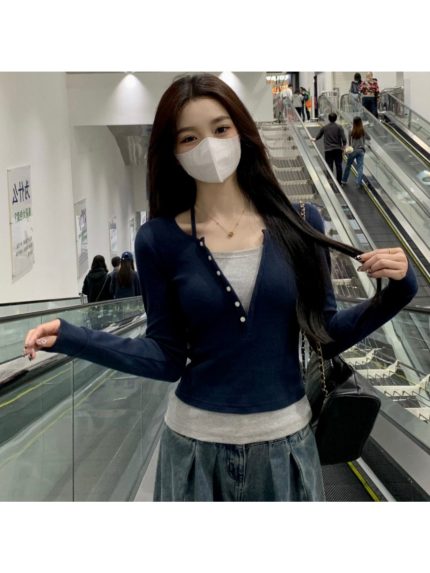 Pure Desire, Shoulder Length Long Sleeved T-shirt, Women’s Fashion Trend, Spring and Autumn, Winter Slim Fit Vacation, Two Niche Spicy Short Base Tops, Women’s Fashion Trend