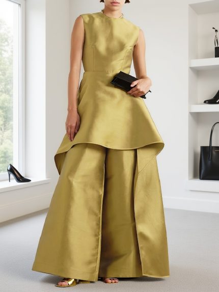 A Stylish Color-Blocked Jumpsuit with a Fitted Waist And Wide Legs, Perfect for Casual Elegance During Commutes Or Vacations