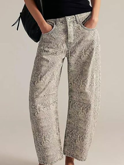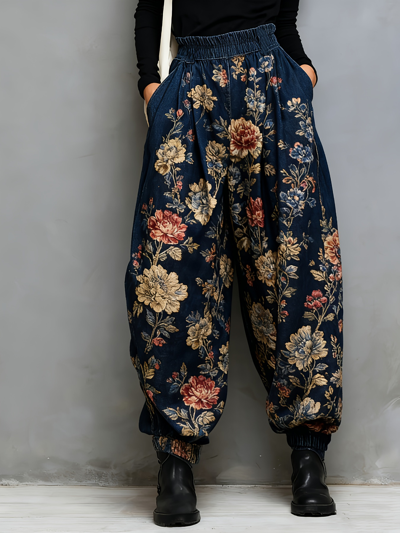 Women’s Floral Print Baggy Barrel Jeans – Y2K Patchwork Wide Leg Denim Ankle Pants, Mid Rise Baggy Boyfriend Jeans for Casual Wear