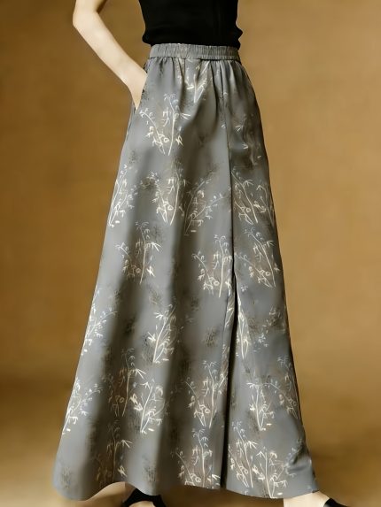 Thin Wide-Leg Pants Loose New Chinese Print Casual Pants for Women