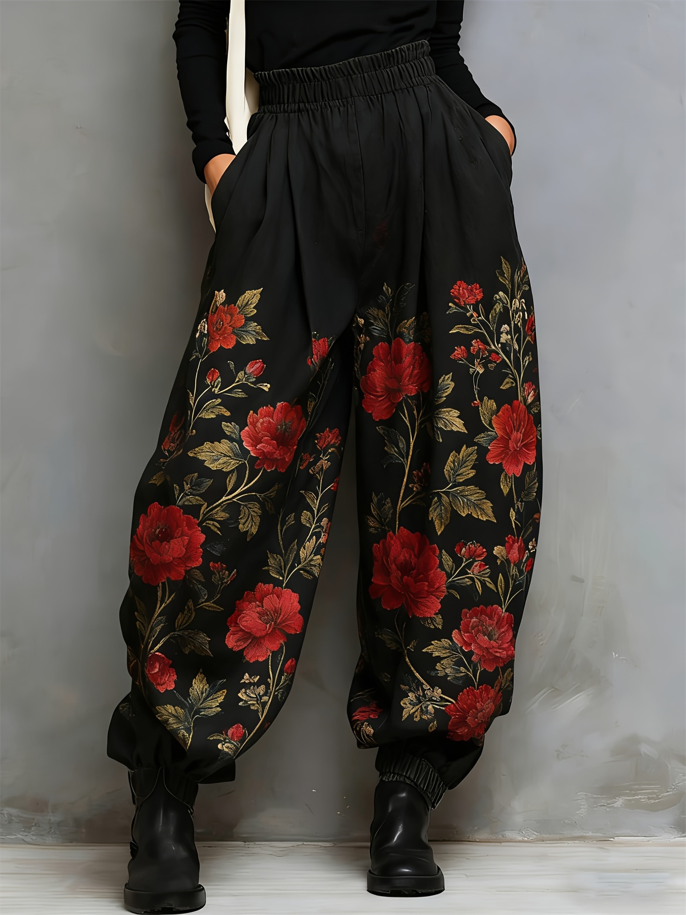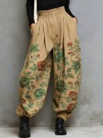 Easy Stamen Print Versatile Pants, Women’S Casual Loose Elastic Waist Summer Pants, Women’S Clothing