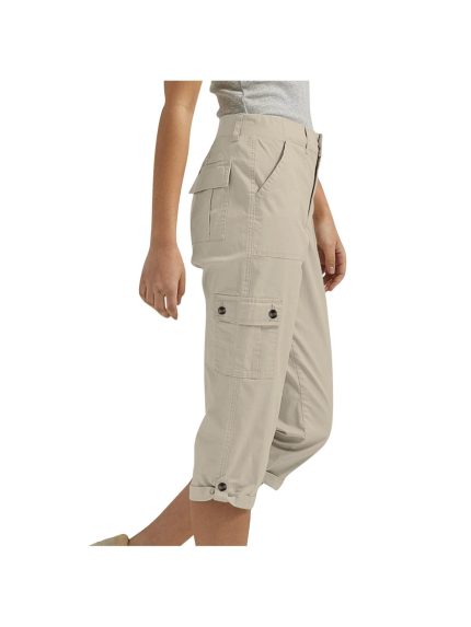 Women’s Elastic High Waisted Cargo Capri Pants, Fashionable Solid Color Pocketed Casual Summer Cropped Trousers