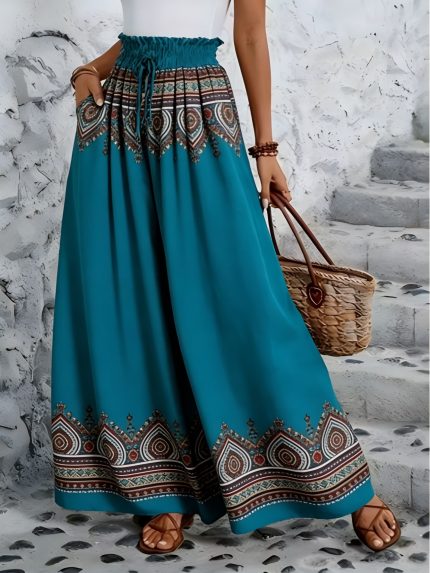 Ladies' Long Skirt Trousers with a Digital Design, Featuring Comfortable Wide Legs, Ideal for Casual Everyday Use. These Elegant Pants Are Perfect for All Seasons, Making Them Suitable for Work Commutes, Dates, Vacations, Or Holiday Gifts