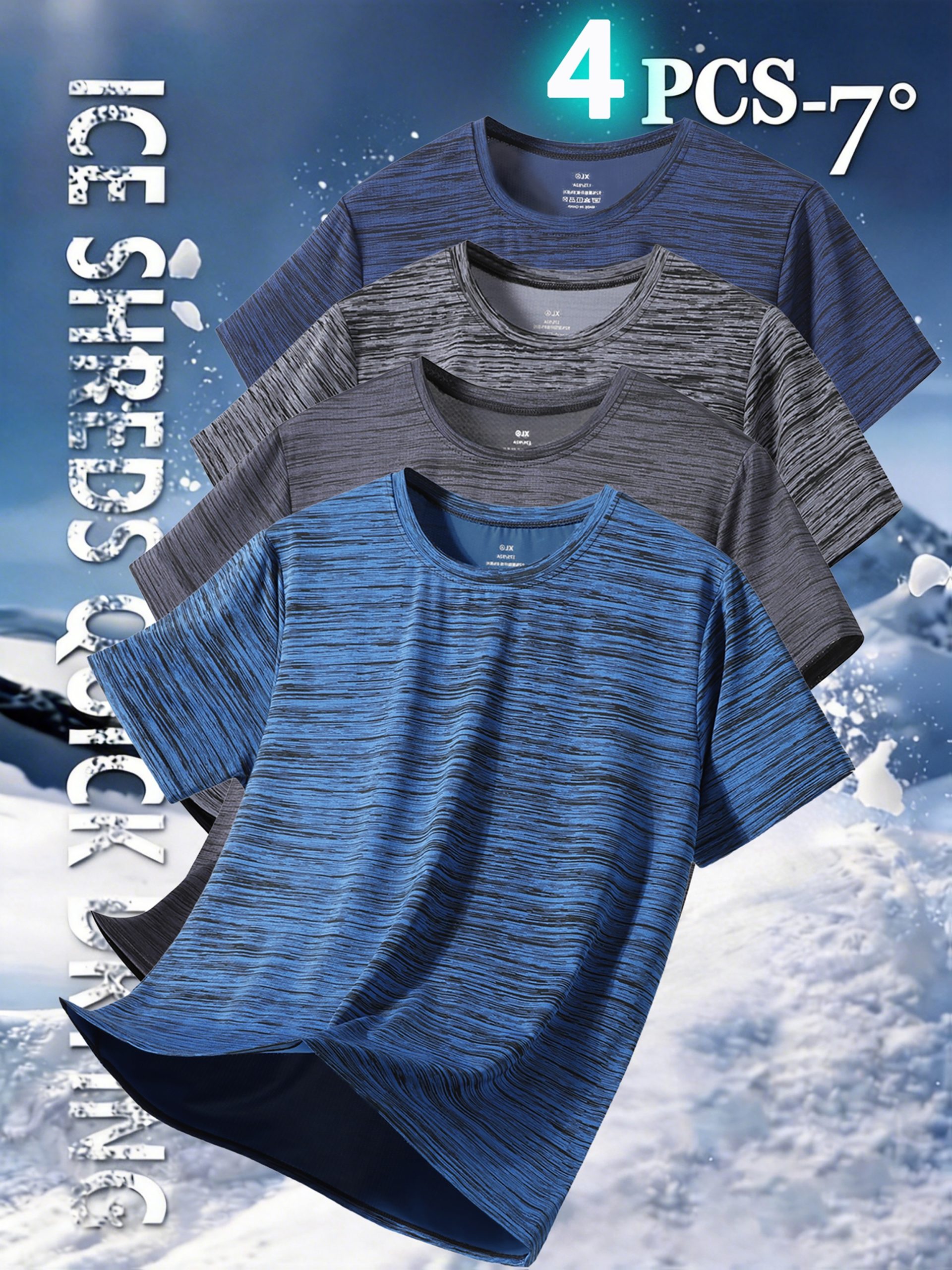 Home Men's T-Shirts 4pcs Set Men’S Summer Thin Quick-Dry Breathable T-Shirt Print Short Sleeve Casual Shirt Sports Outdoor Running Fitness Coach Same Style Recommended High-Elastic Non-Sticky Body-Hugging Tight T-Shirt Easy to Wash Outdoor Travel Lightweight T-Shirt Da