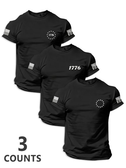 Set of 3 Men'S Long-Sleeve T-Shirts Featuring Letter And Flag Prints, Suitable for Regular Wear in Spring And Autumn, Perfect for Outdoor Sports And Casual Activities $43.63 – $44.03Price range: $43.63 through $44.03