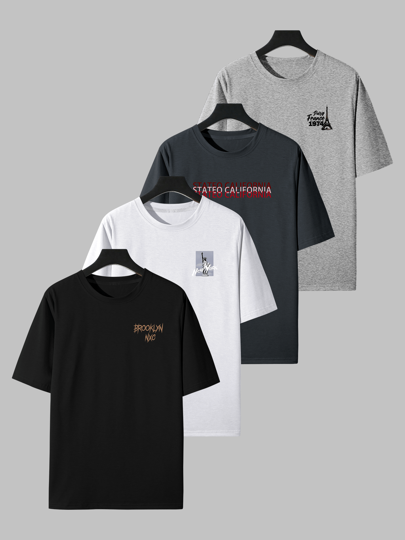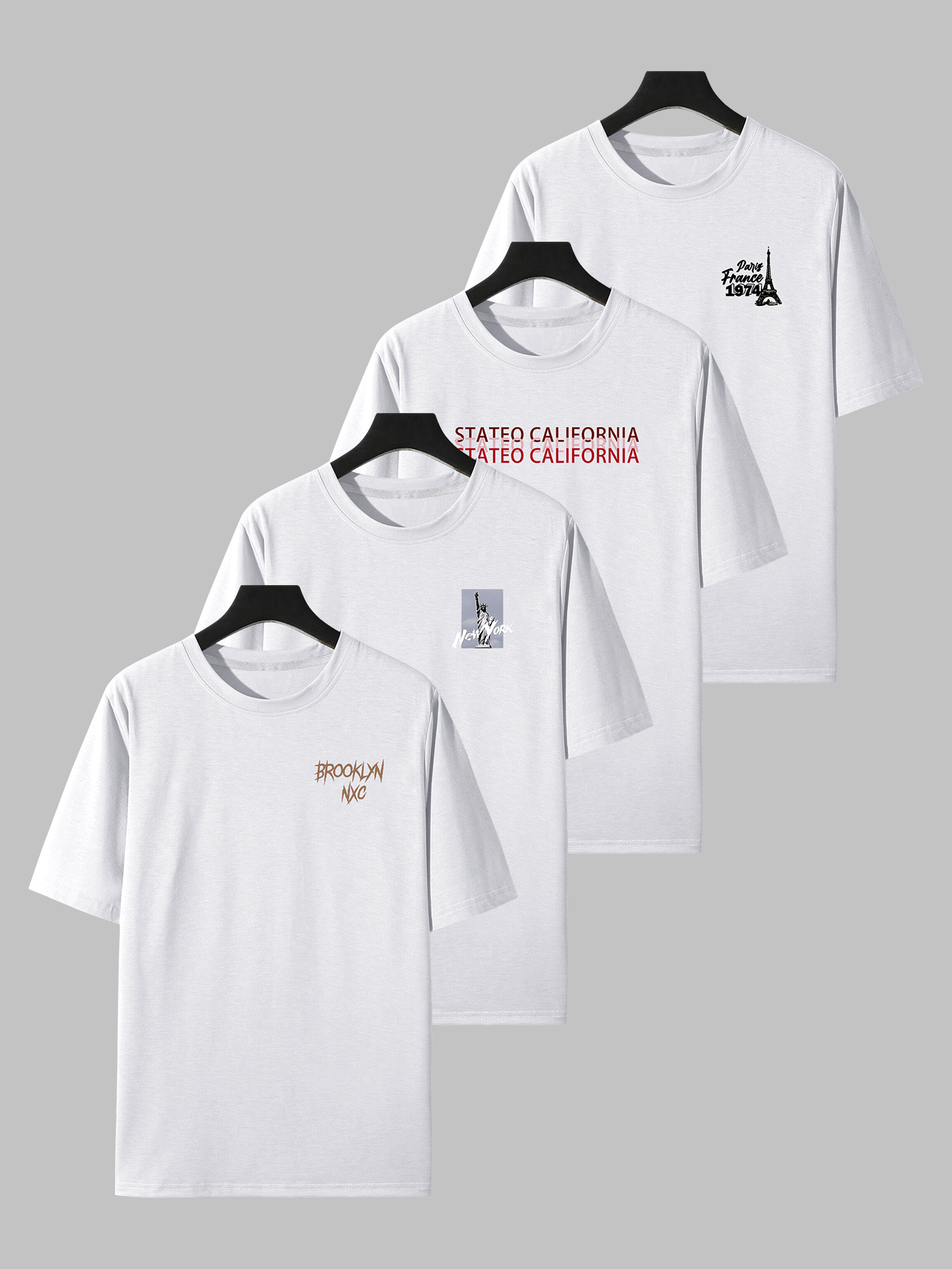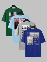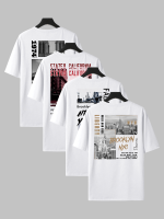 Hip Hop Graphic Tees 4pcs Men’S Hip Hop Graphic Print T-Shirts – Casual Crew Neck, Short Sleeve Tees with NYC & Brooklyn Back Designs, White, All-Season Comfort, Casual Wear|Urban Fashion|Graphic Print