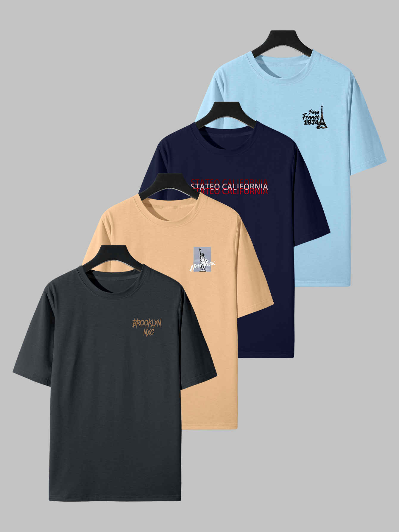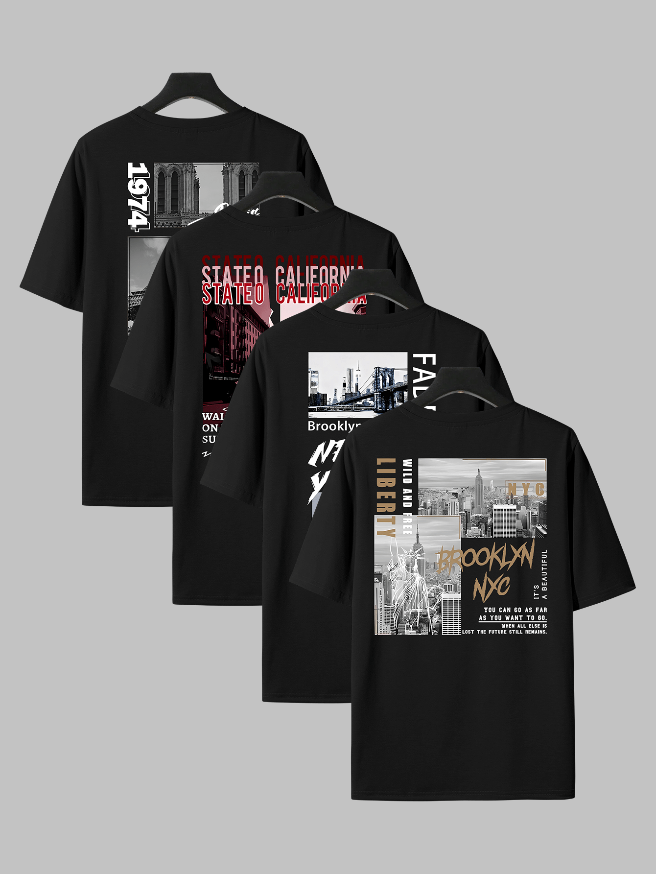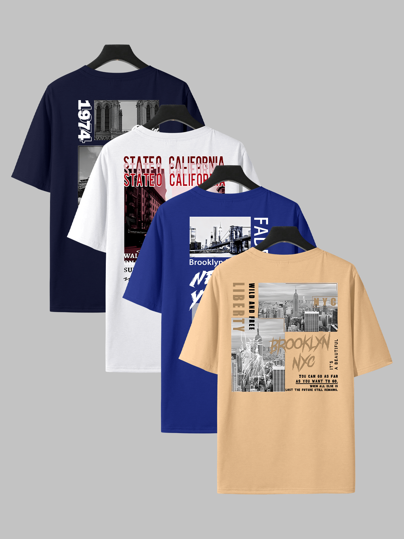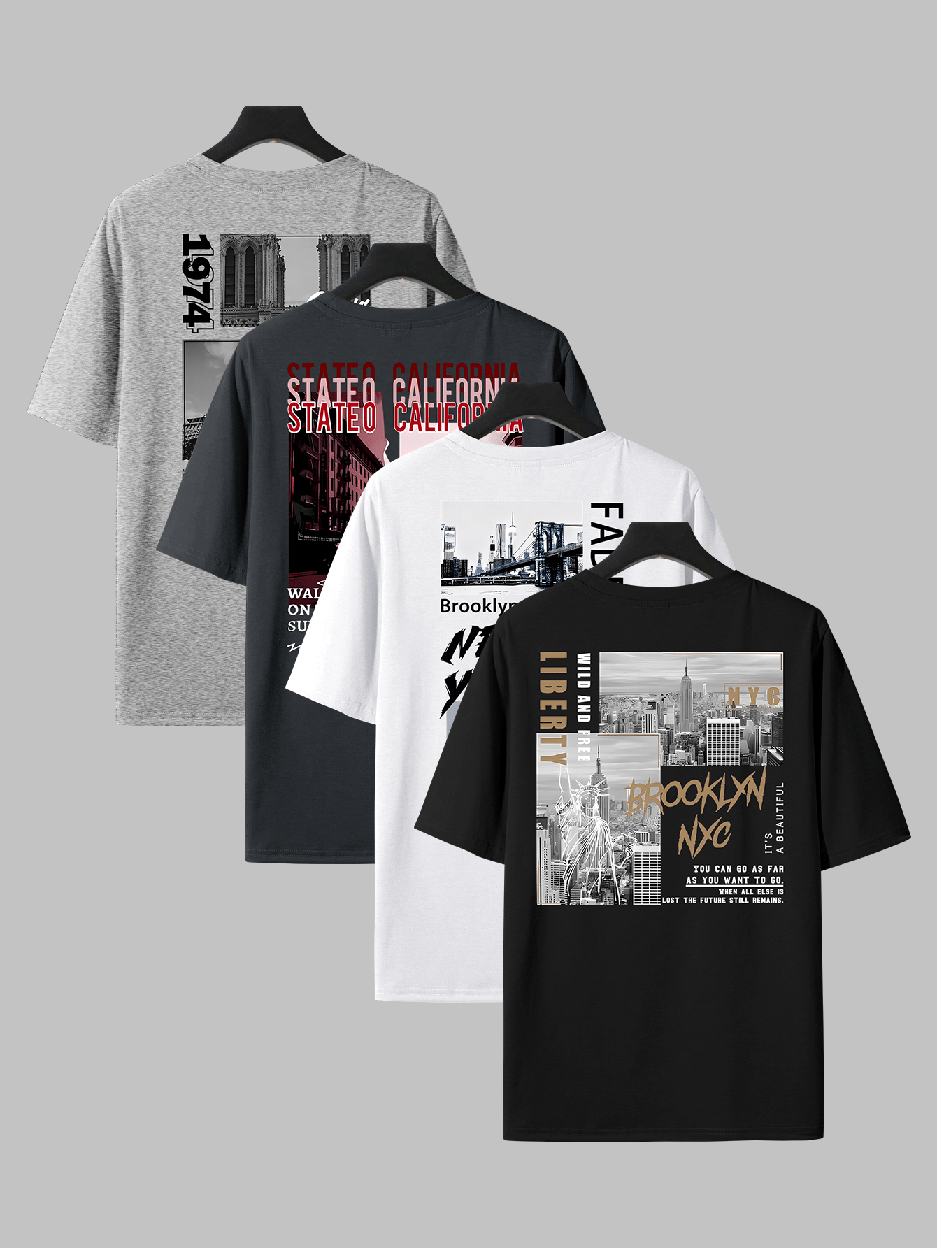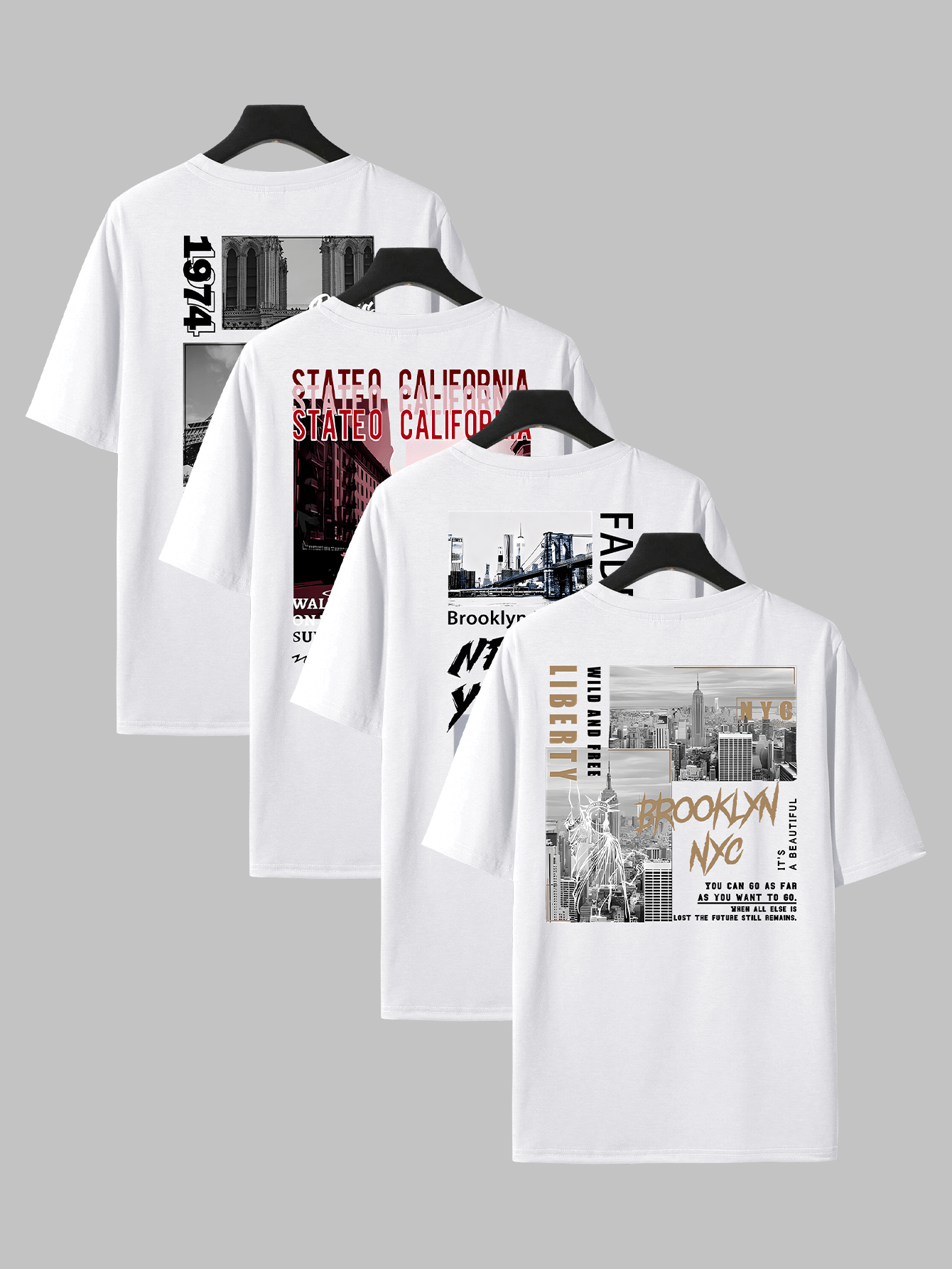 Home Men's T-Shirts Hip Hop Graphic Tees 4pcs Men’S Hip Hop Graphic Print T-Shirts – Casual Crew Neck, Short Sleeve Tees with NYC & Brooklyn Back Designs, White, All-Season Comfort, Casual Wear|Urban Fashion|Graphic Print