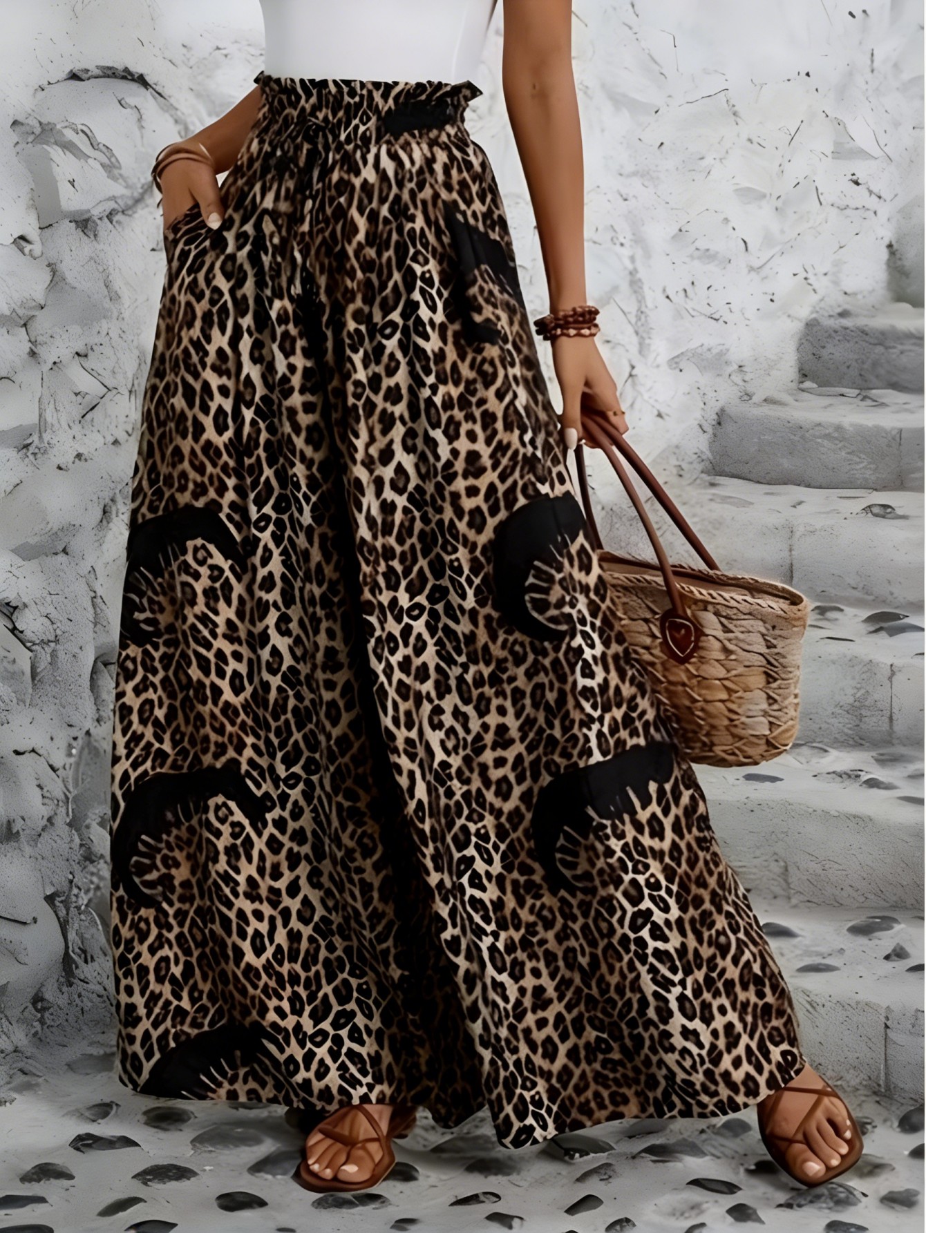 Ladies’ Long Skirt Trousers with a Digital Design, Featuring Comfortable Wide Legs, Ideal for Casual Everyday Use. These Elegant Pants Are Perfect for All Seasons, Making Them Suitable for Work Commutes, Dates, Vacations, Or Holiday Gifts