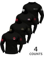 Men’s Long-sleeved T-shirts 4PCS Letter Flag Pattern Printing Regular Spring and Autumn Long-sleeved T-shirts, Outdoor Sports and Leisure Long-sleeved Tops 4PCS SET
