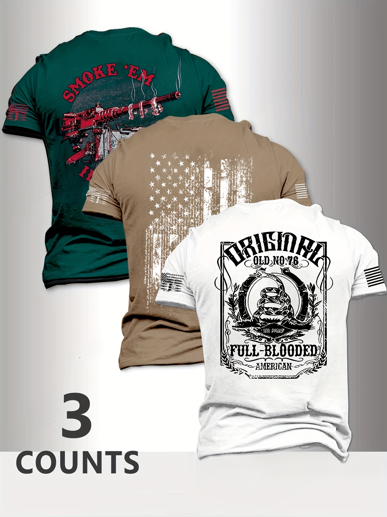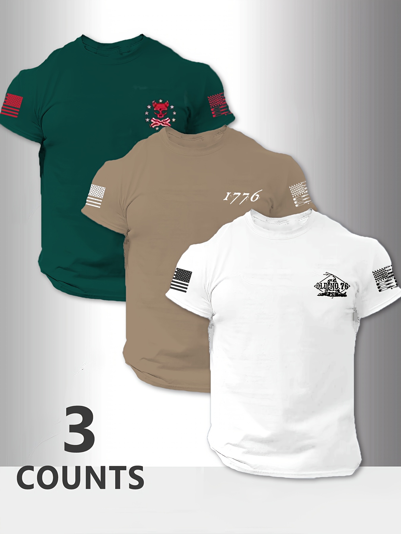 Home Men's T-Shirts Men’s Short-Sleeve American Flag Pattern Crew Neck T-Shirt, Suitable for Summer Outings, Casual and Versatile Short-Sleeve 3pcs Set