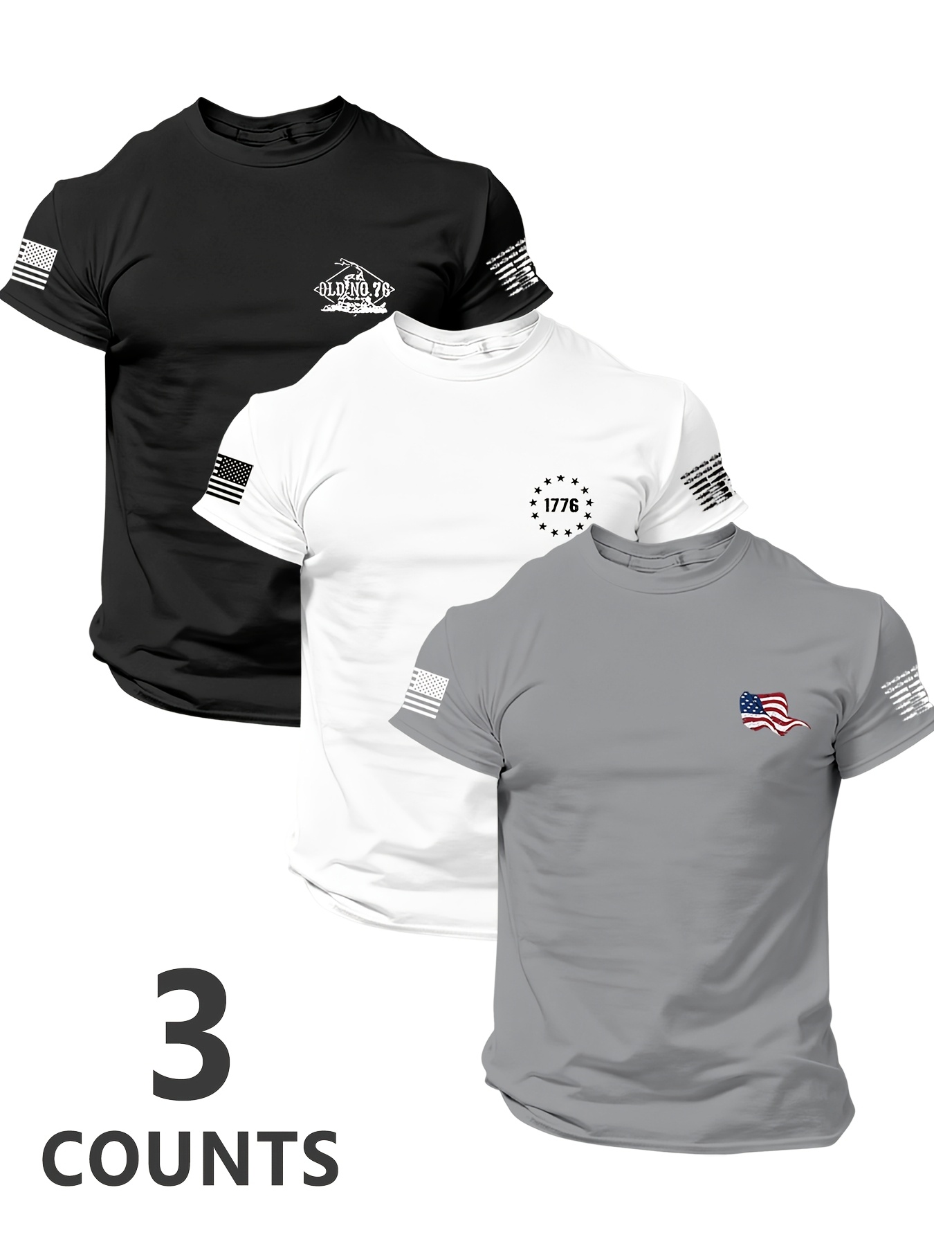 Men’s Sporty Casual T-Shirts – 3pcs Summer – Simple and Stylish Short Sleeve – Multi-Color Crew Neck Tops · Suitable for Gym, Teens, Father’s Gift, Couples’ Outfits, Holiday Parties, Daily Hiking, Streetwear, Running