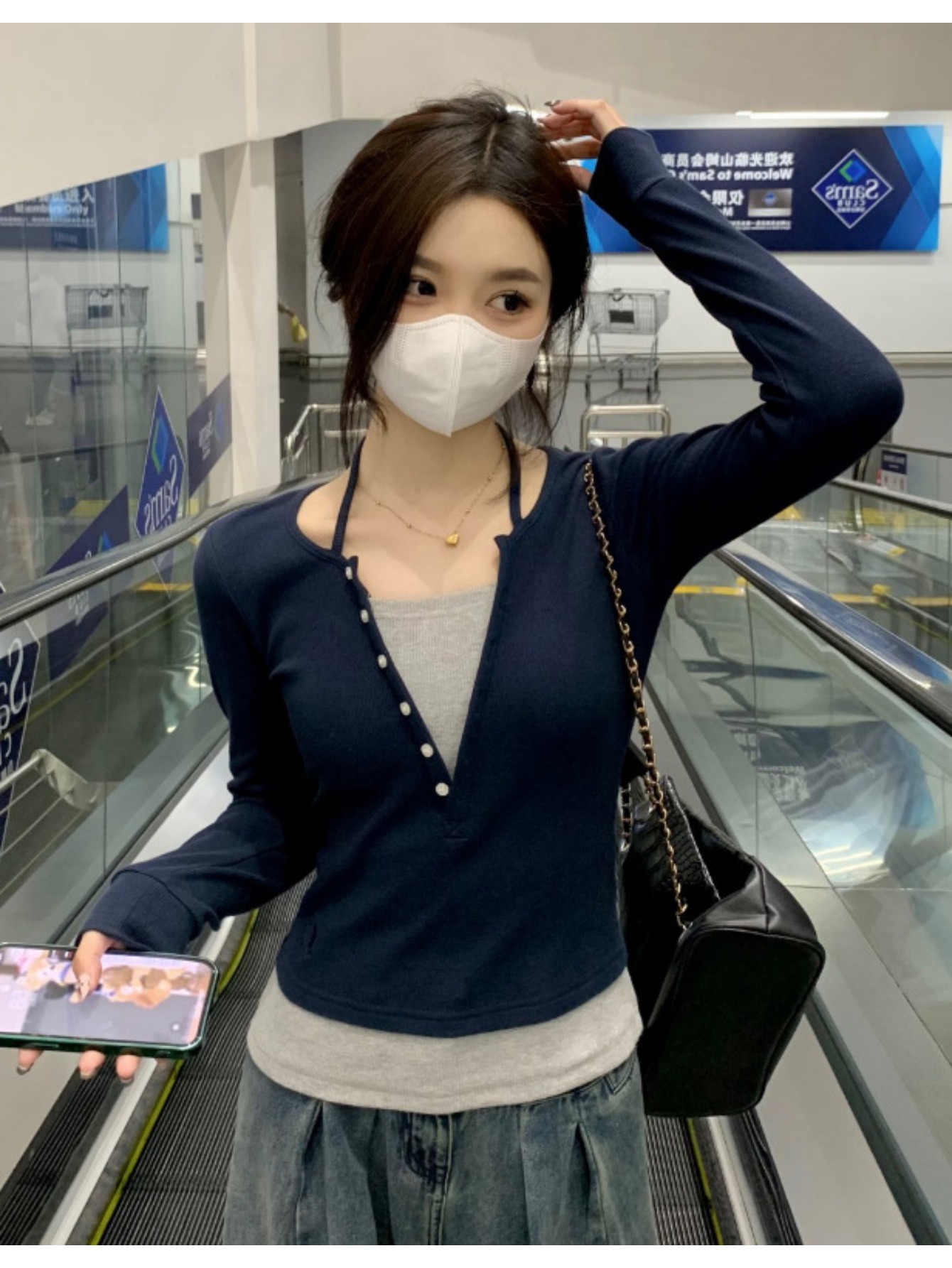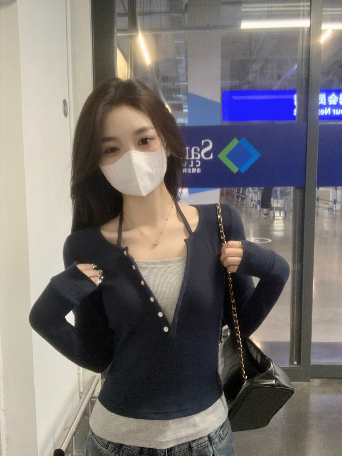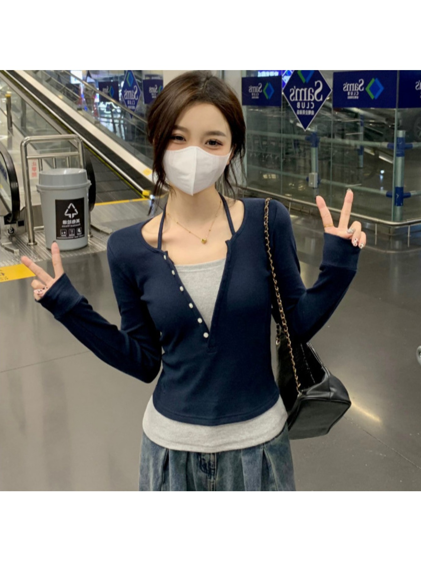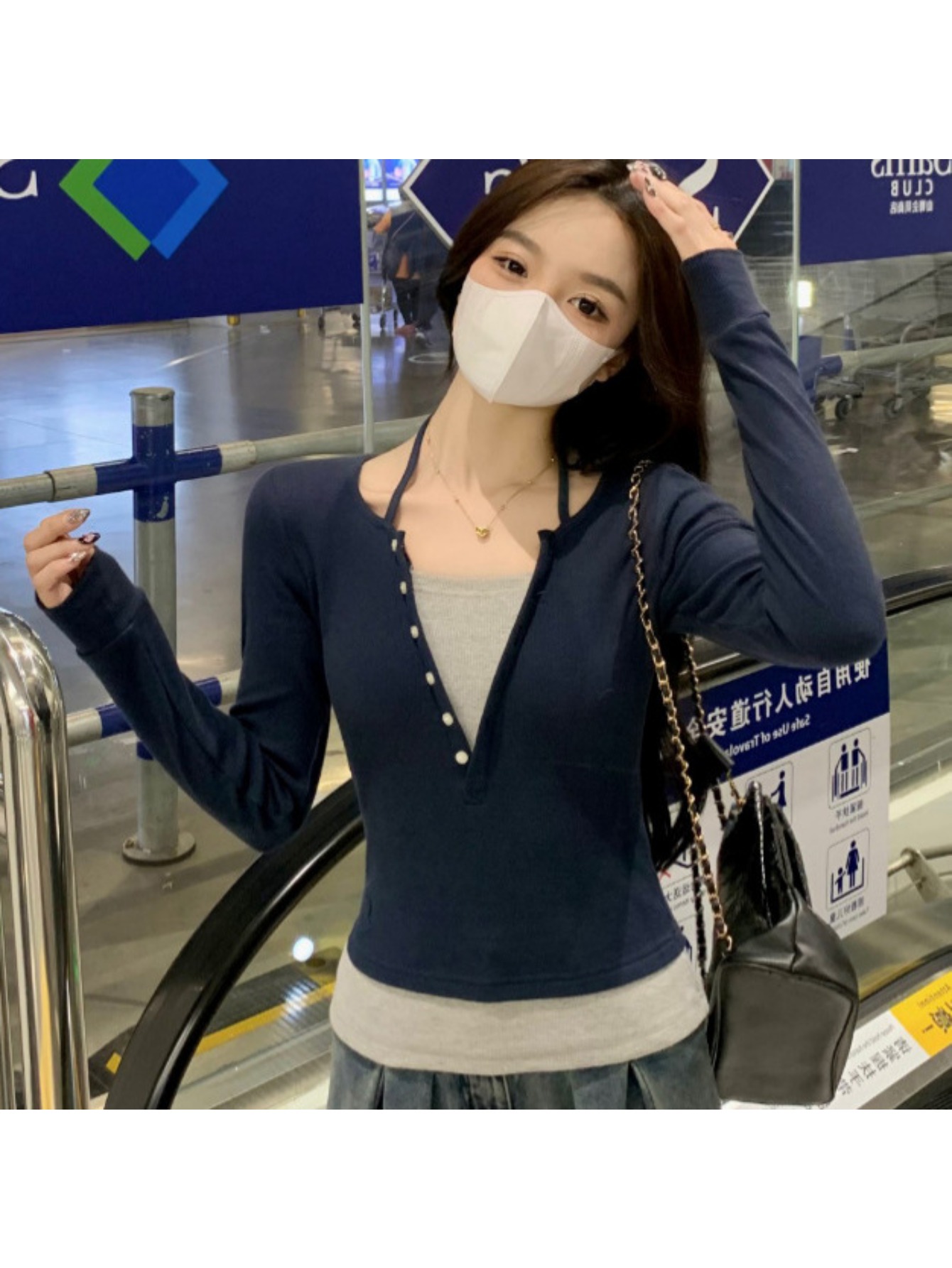 Pure Desire, Shoulder Length Long Sleeved T-shirt, Women’s Fashion Trend, Spring and Autumn, Winter Slim Fit Vacation, Two Niche Spicy Short Base Tops, Women’s Fashion Trend