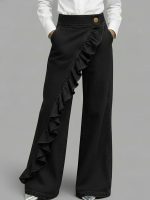 Solid Side Pocket Cutout Pants | Hem Button Detail Fashion Trousers | Spring Fall New Casual Style | Versatile Daily Bottom Wear