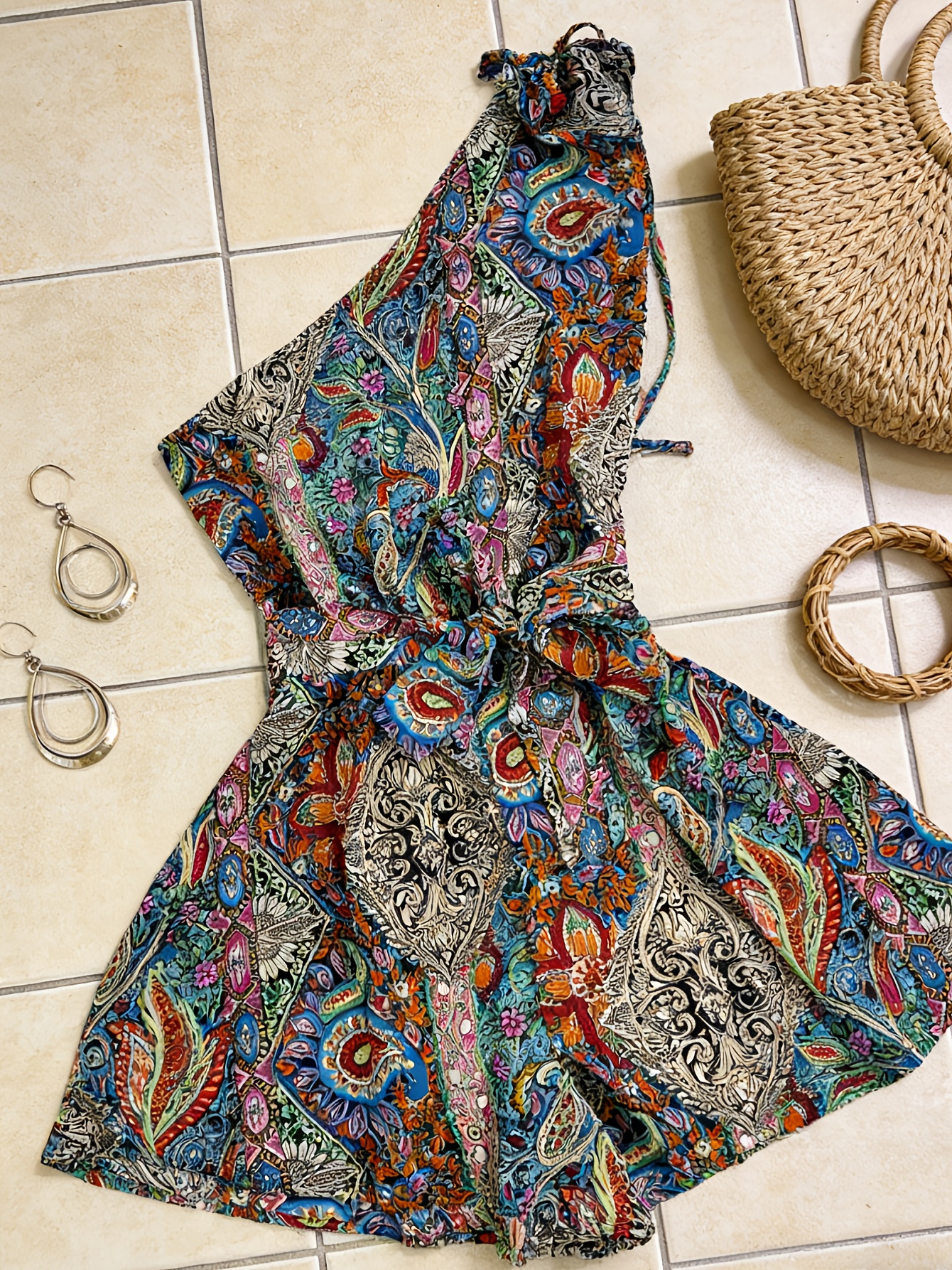 Be the first to review “Summer Bohemian Style Off-Shoulder Jumpsuit with Paisley Print, Designed to Accentuate The Waist And Create a Effect, Perfect for a Vacation” Cancel reply
