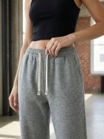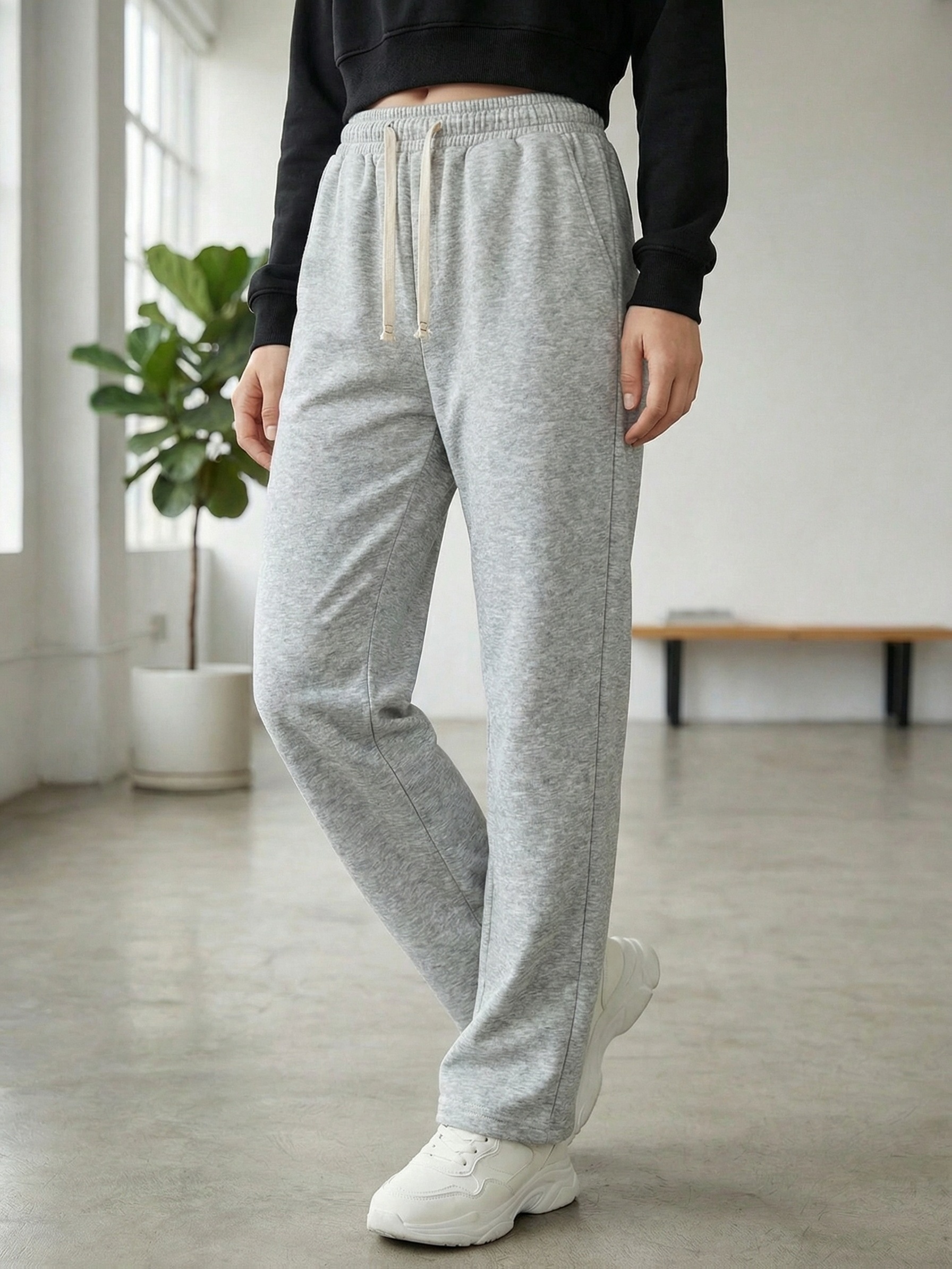 Casual Straight-Leg Pants for Women, Featuring a Solid Color And a Minimalist Design with an Elegant Drawstring Waist. These Loose-Fitting Trousers Are Perfect for Both Casual And Formal Events