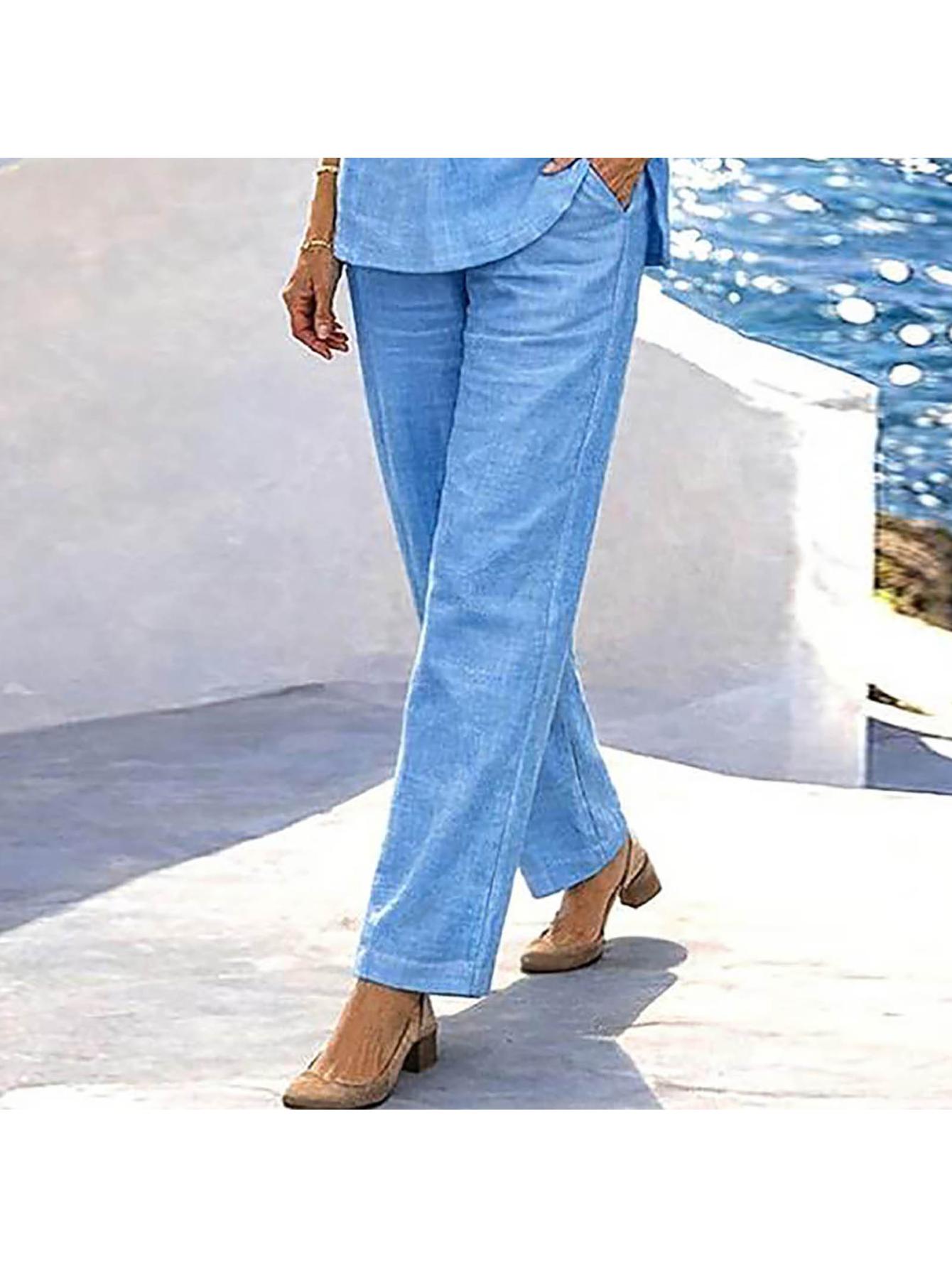 Casual Straight-Leg Pants for Women, Featuring a Solid Color And a Minimalist Design with an Elegant Drawstring Waist. These Loose-Fitting Trousers Are Perfect for Both Casual And Formal Events
