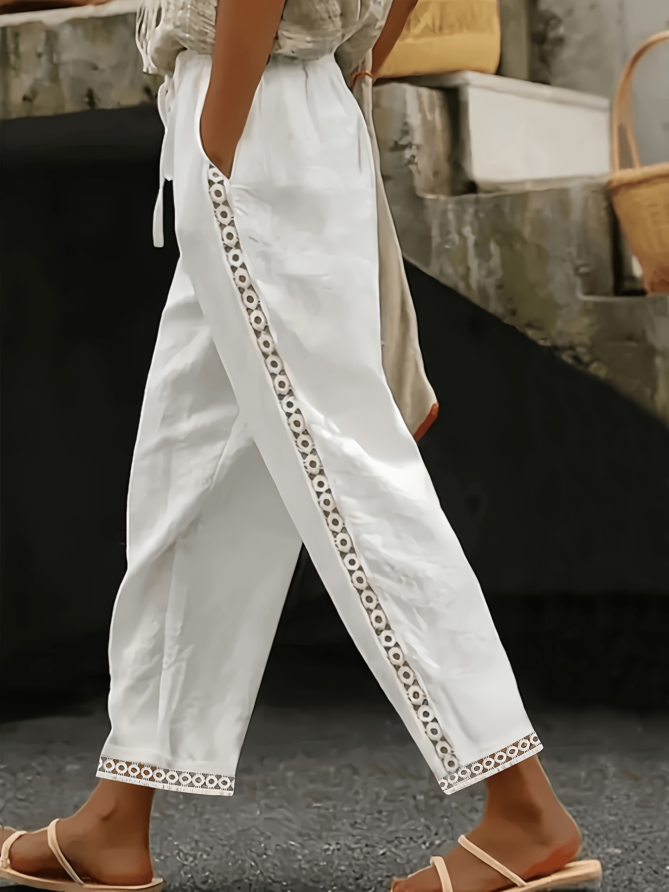 Be the first to review “Women’s Pants, Casual Commute, Solid Color Embroidered Lace Patchwork Hollow-Out, Elastic Waist with 2 Pockets, Lightweight Casual Trousers for Women” Cancel reply
